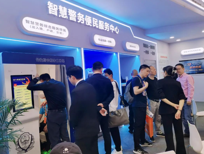 雄帝科技以信息化、智能化手段改革服務模式,大膽創新,打造集全系列智慧車駕管自助服務設備的智慧無人車管所服務大廳:60秒制證的《車證自助一體機》、照相及多警種多業務一機通辦的《警務綜合服務一體機》、一鍵批量高速制取駕駛證的《批量制證機》,提供了“群眾便捷、民警賦能”的智慧警務民生服務,吸引了眾多觀展嘉賓參觀交流。