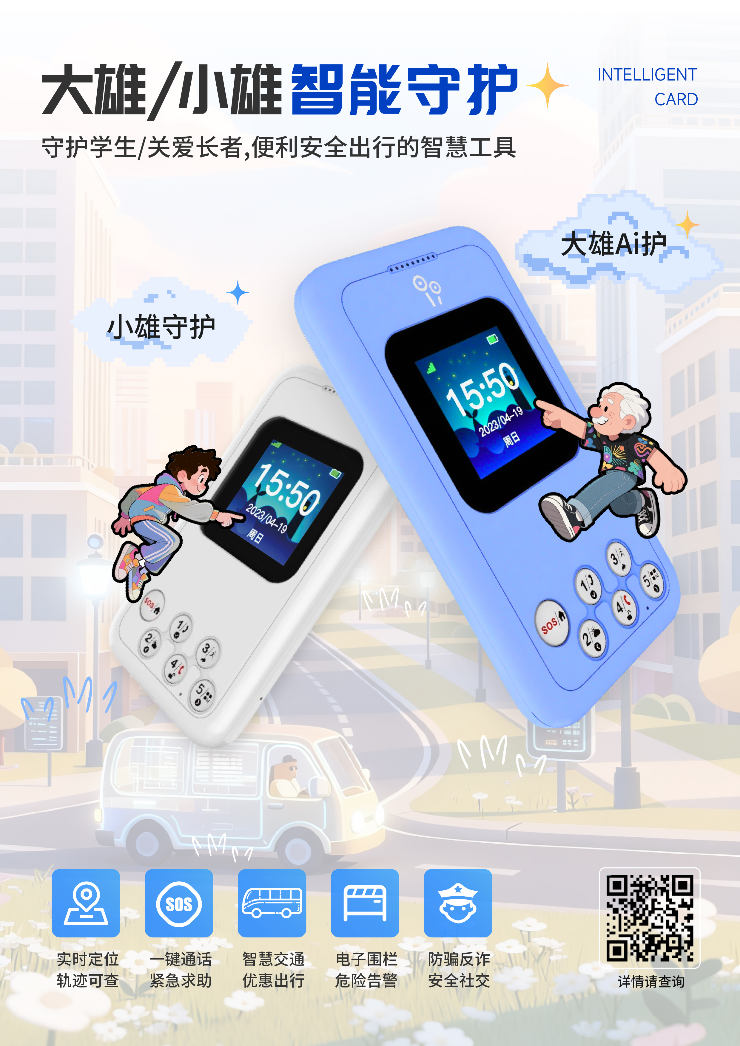 “大雄守護”終端,聚焦老年人出行安全,可享受老年乘車優(yōu)惠減免政策(需對接當?shù)毓幌到y(tǒng)),針對健康老人及不同失能程度的老人群體,創(chuàng)新搭載一鍵通話、一鍵緊急呼叫、防騙反詐提示、防走失定位、近水域智能報警、出行軌跡追蹤等多重服務(wù),構(gòu)建起全方位的安全保障網(wǎng)。