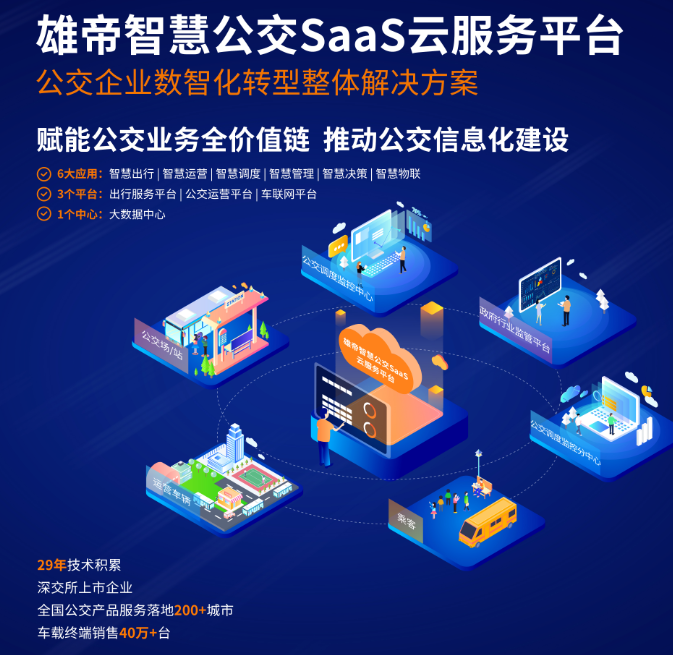 雄帝憑借在公交領(lǐng)域多年的行業(yè)積淀,致力于推廣智慧公交整體解決方案,將公共交通業(yè)務(wù)從多元聚合支付拓展到智慧調(diào)度、智慧運(yùn)營、主動(dòng)安全、客流分析、智慧場(chǎng)站等領(lǐng)域,其中公交支付業(yè)務(wù)已覆蓋全國200多個(gè)城市,SaaS服務(wù)模式覆蓋40多個(gè)城市公交。并基于公交全業(yè)務(wù)的數(shù)據(jù)中臺(tái)能力,打造推出智慧公交SaaS云服務(wù)平臺(tái)產(chǎn)品,為客戶提供核心業(yè)務(wù)支撐的同時(shí),助力公交解決方案的互聯(lián)網(wǎng)轉(zhuǎn)型與數(shù)字化升級(jí)!